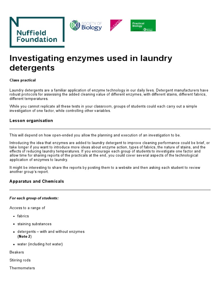 Investigating Enzymes Used in Laundry Detergents PDF Laundry